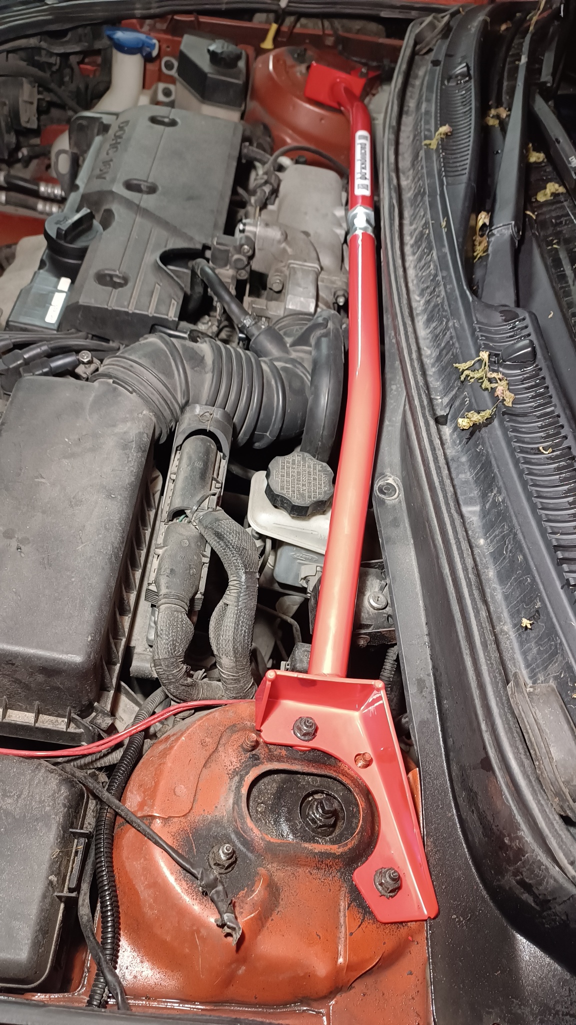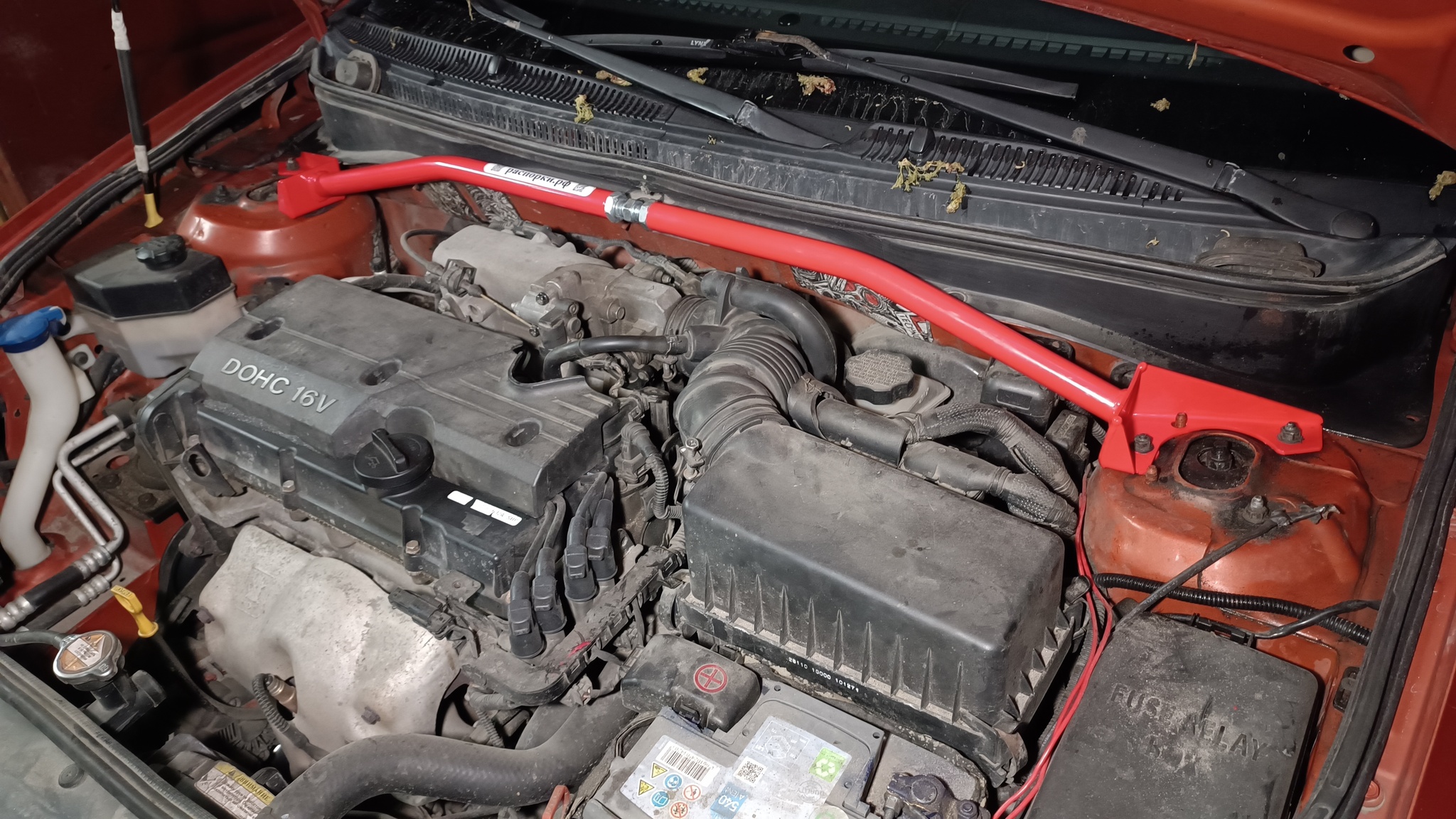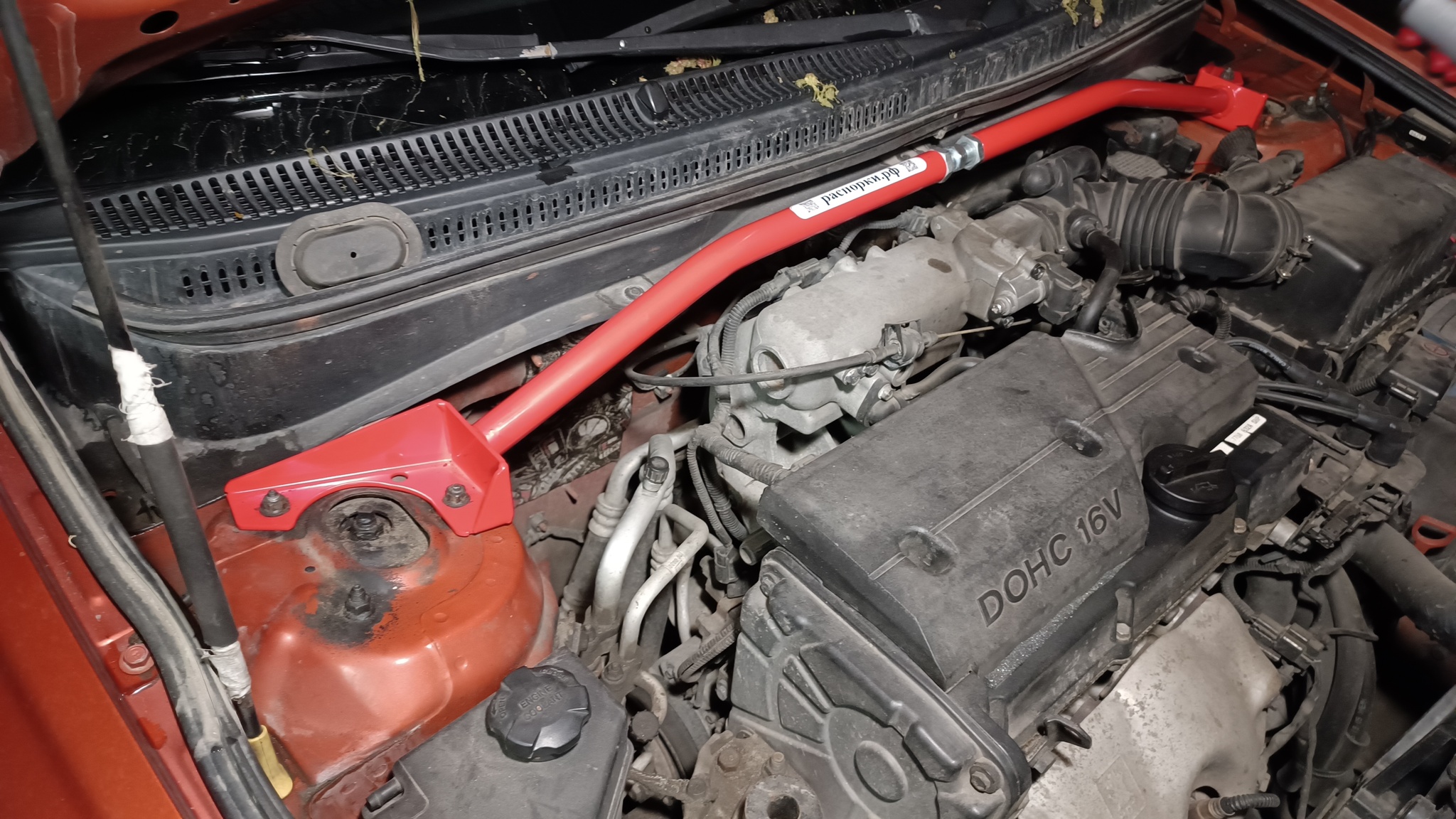 Распорка передних стоек на Hyundai Accent / Verna MC (2006-2011 г.в.) и Kia Rio 2-го поколения (2005-2011) с бензиновым двигателем регулируемая.
