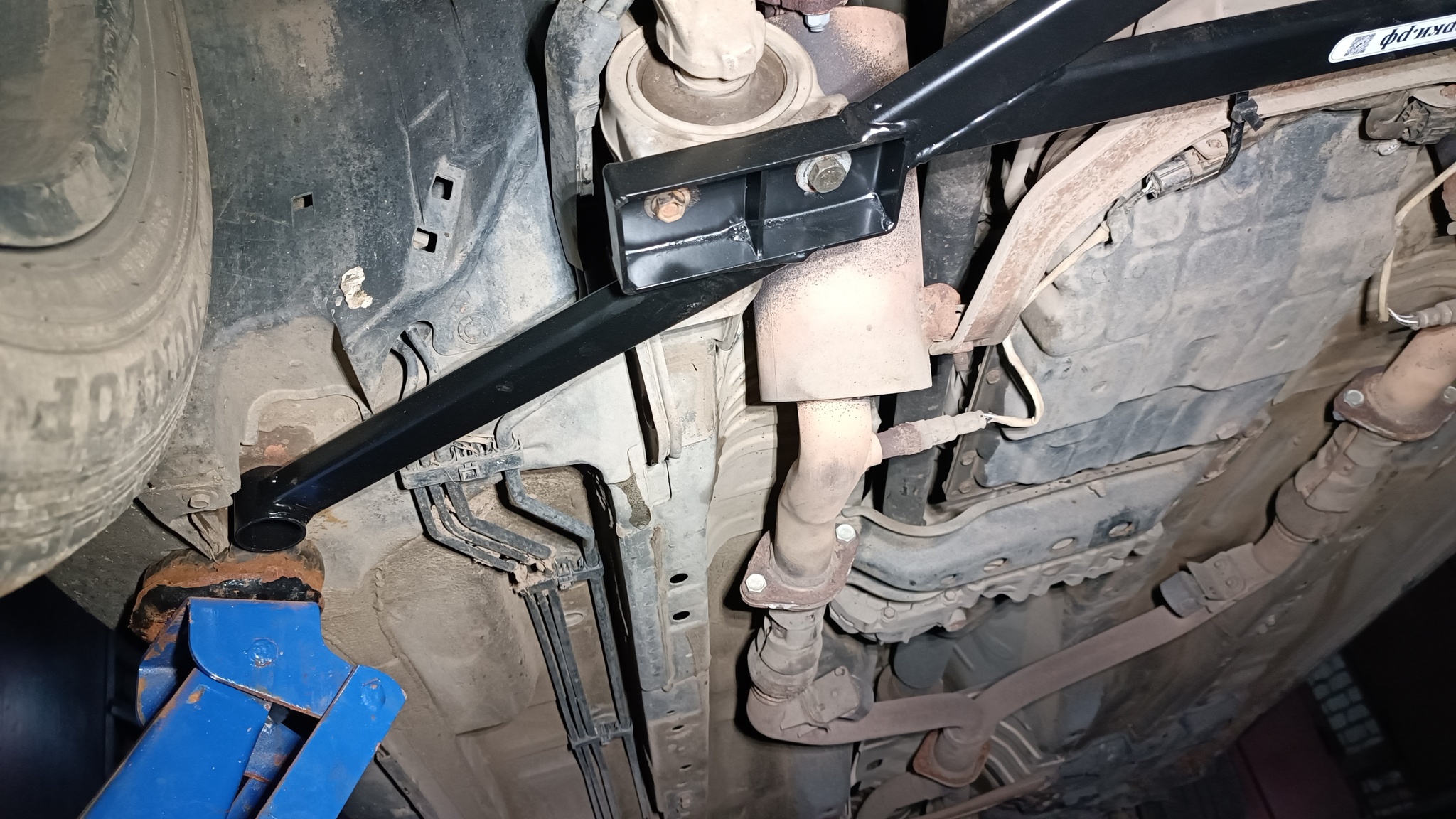 Устанавливается за место штатной тонкой распорки, которая довольно быстро гниёт.