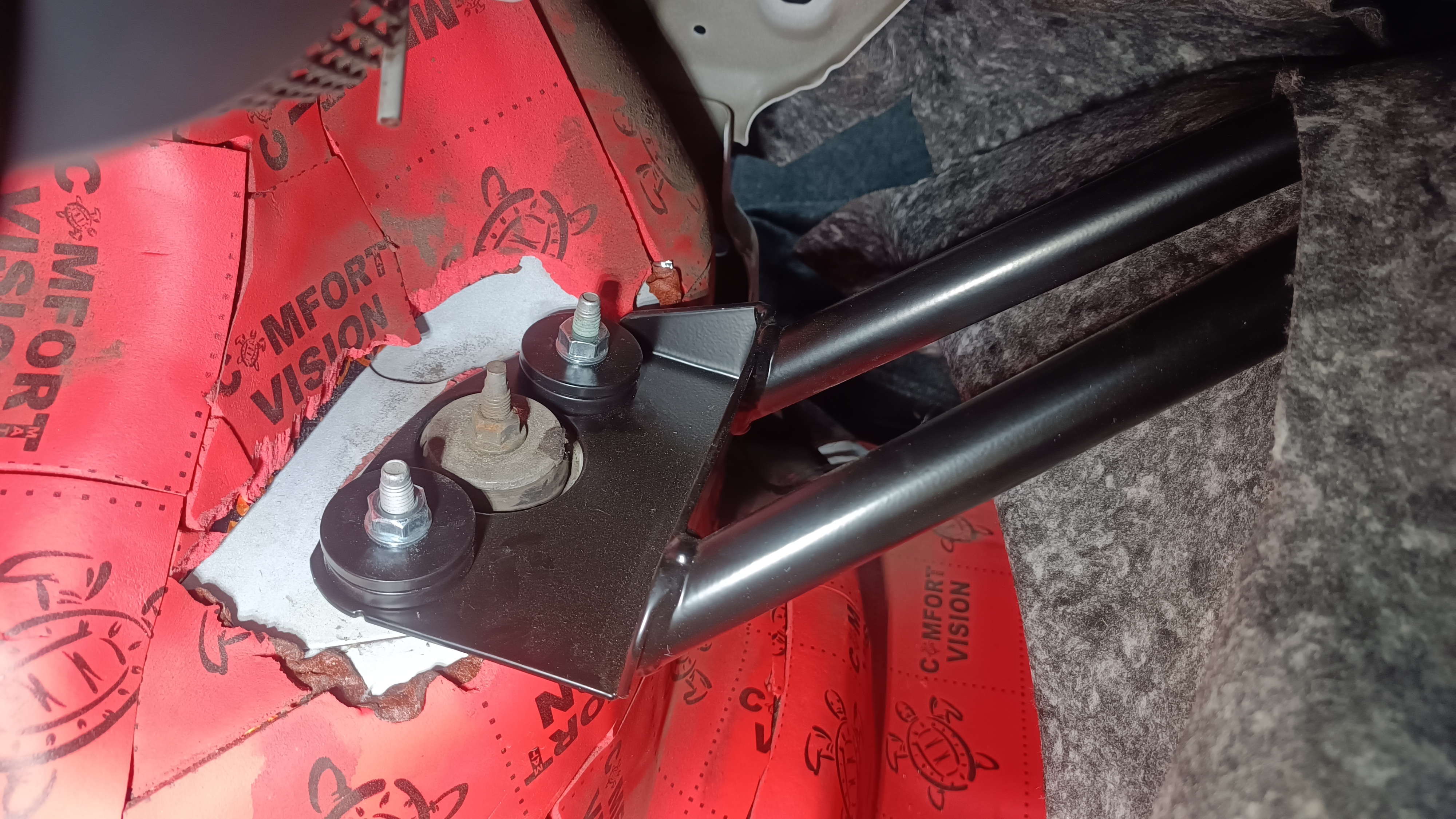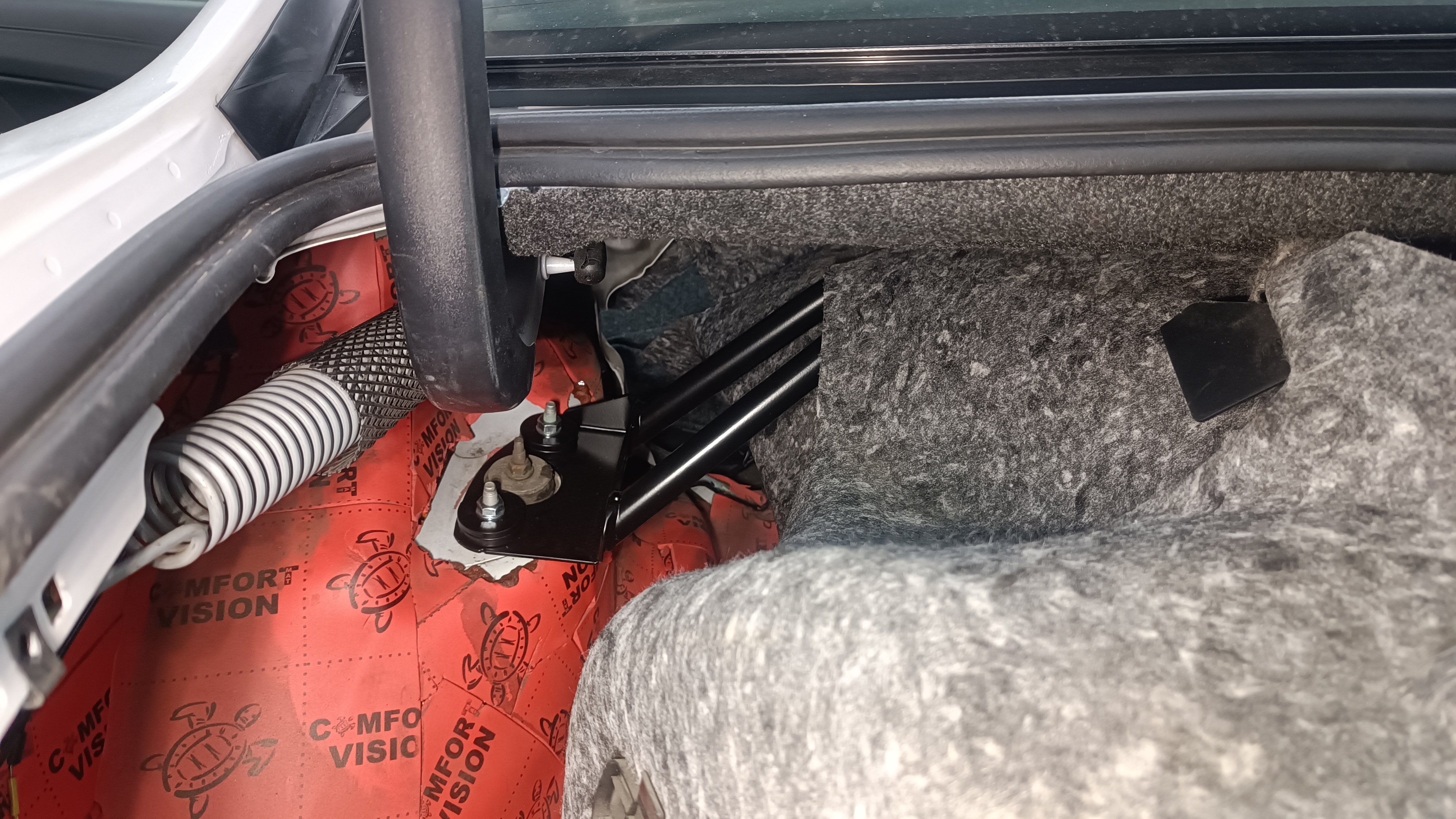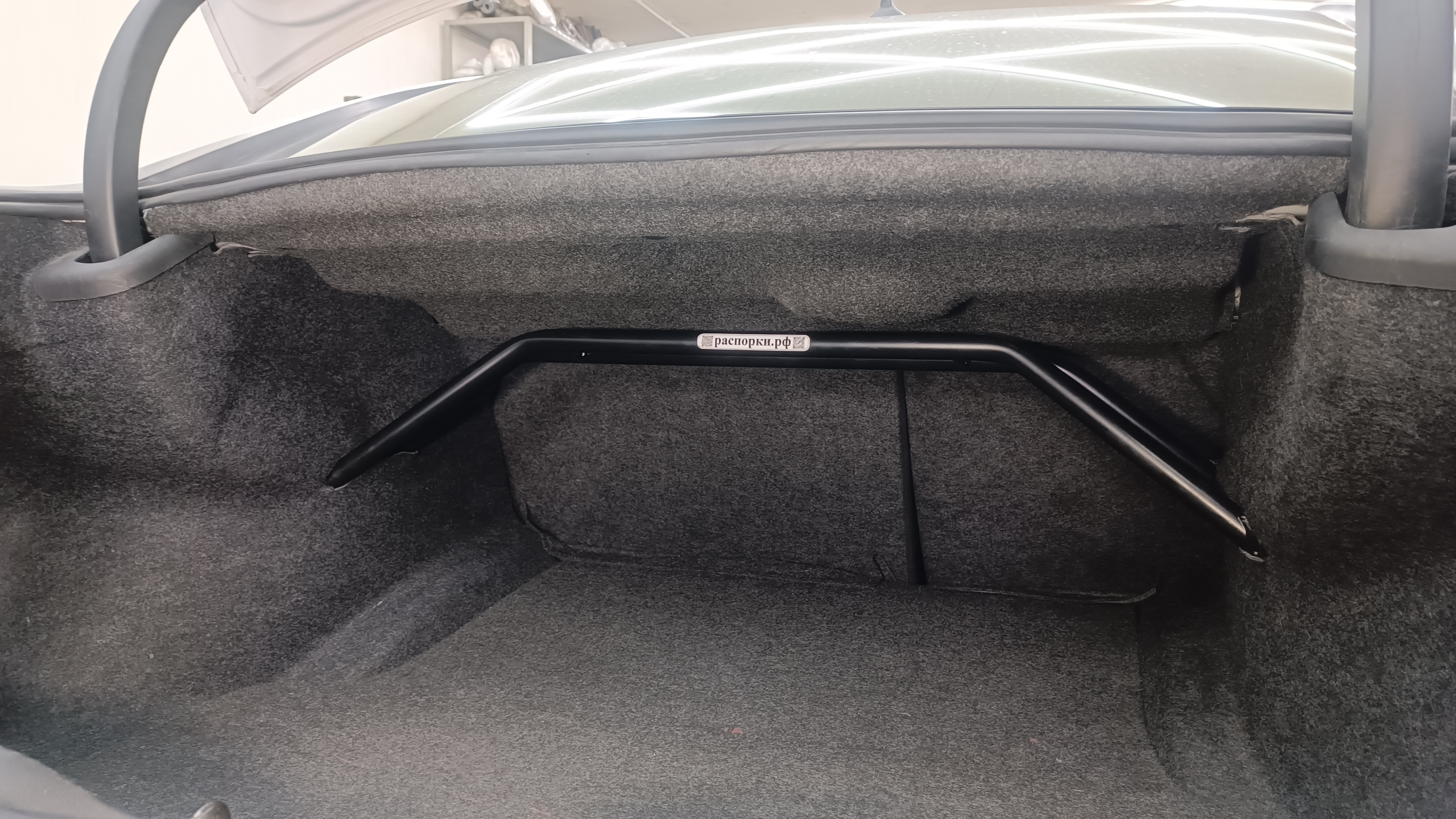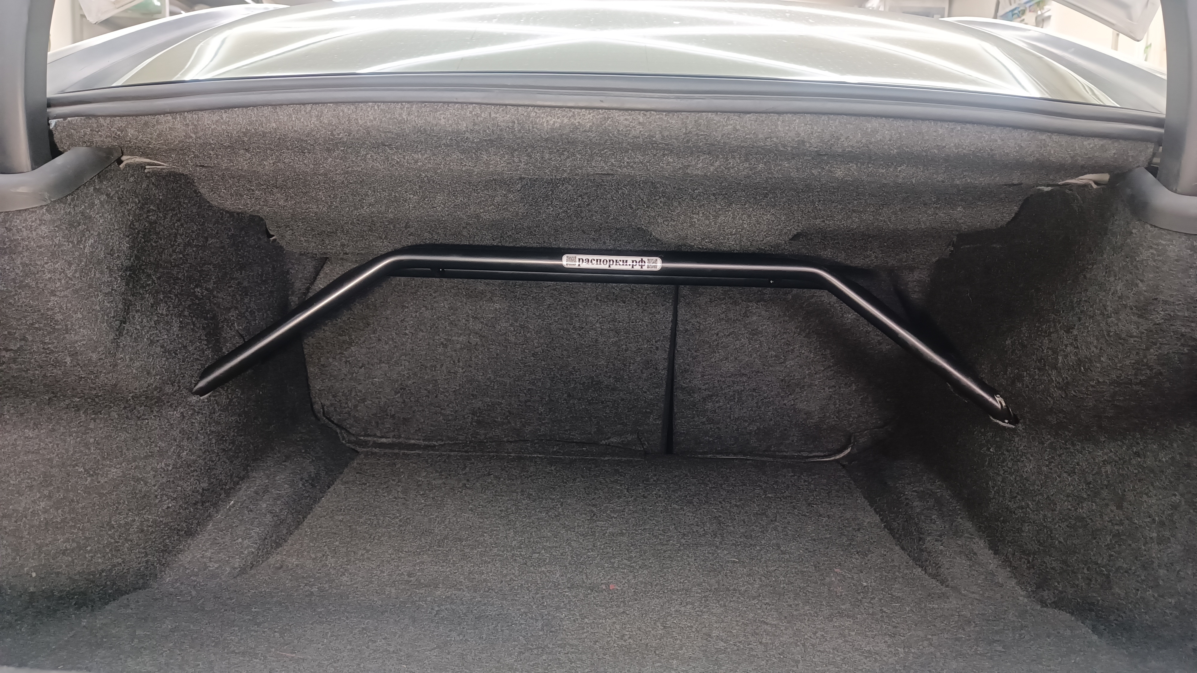 При установки распорки обшивку багажника необходимо прорезать по месту.