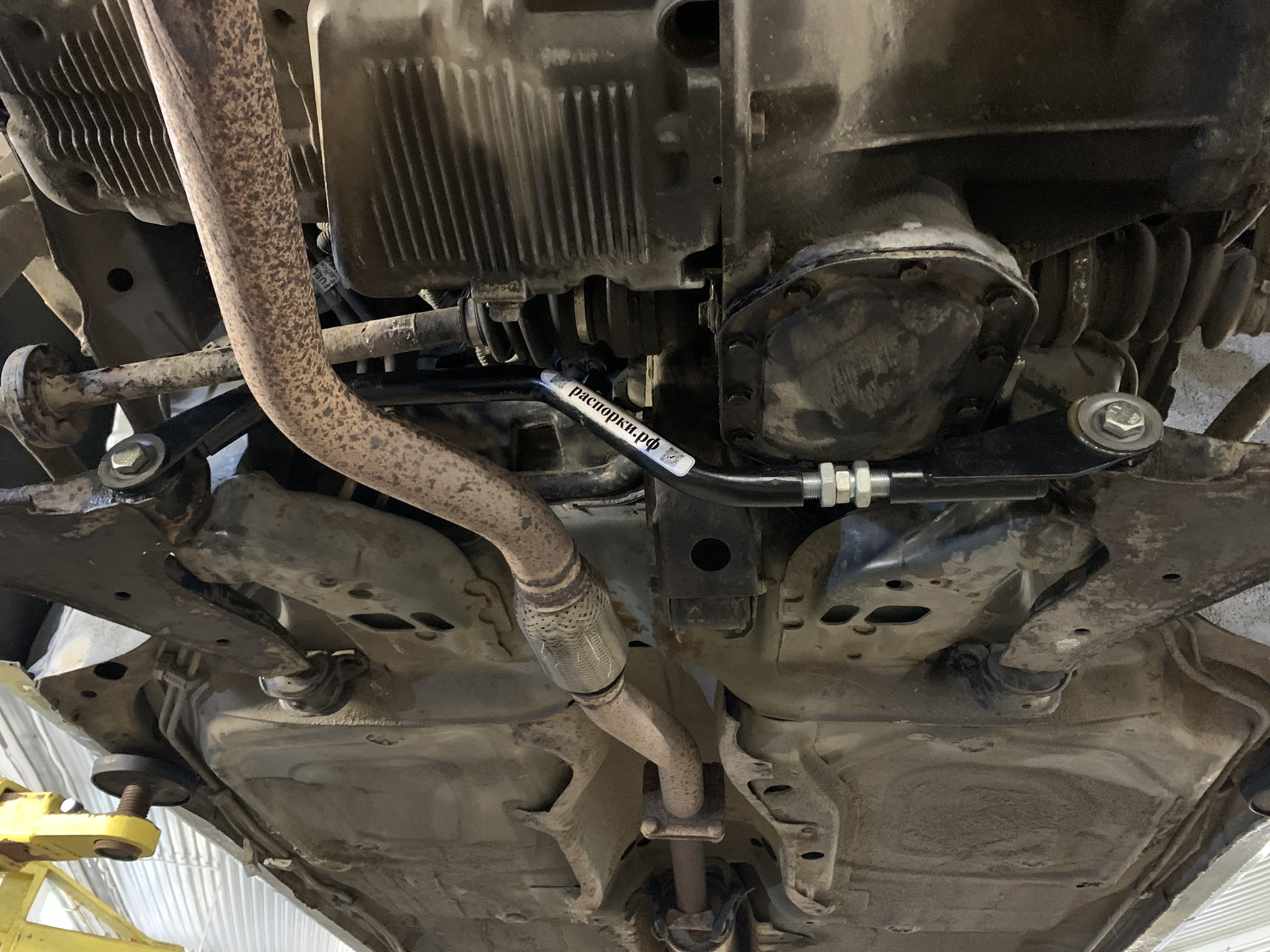 Растяжка рычагов передней подвески воспринимает боковую нагрузку от колес при поворотах и резких перестройках при объезде препятствий. Равномерно нагружает лонжероны в местах крепления рычагов передней подвески. Нижняя растяжка лучше работает в паре с растяжкой передних стоек. Конструкция растяжки не уменьшает клиренс автомобиля.